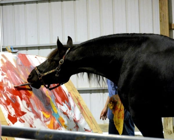 Cavalo pintor faz quadros que valem R$ 5 mil