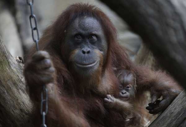 Essa família orangotango teve o azar de ir parar em um zoológico, na Alemanha.