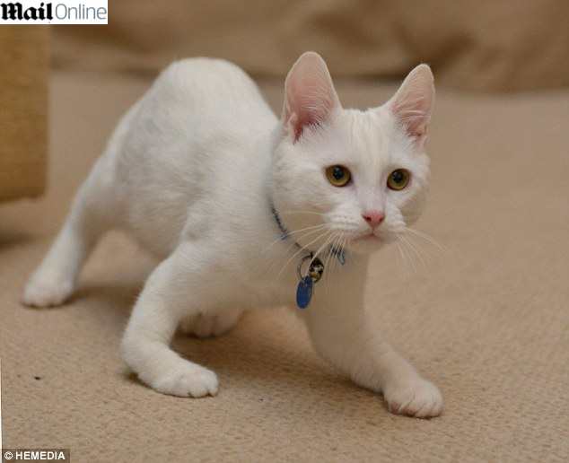 Ele nasceu com uma condição rara. Ossos de metade das pernas dianteiras não se desenvolveram. Então, o gatinho aprendeu a andar e brincar com os cotovelos.