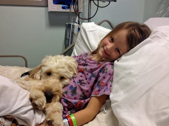 A goldendoodle (uma raça que inventaram na mistura de golden retriever com poodle) LilyBelle foi treinada a detectar alimentos que contêm nozes, amêndoas e amendoim, que podem até matar a Meghan Weingarth, de 7 anos.
