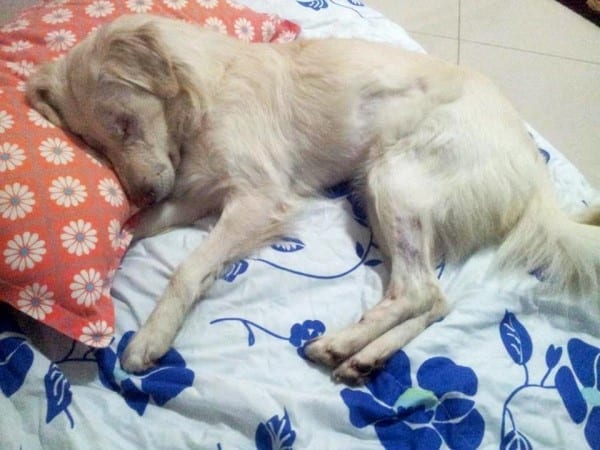 Jatobá, o golden que ficou cego após atropelamento, está no novo lar.