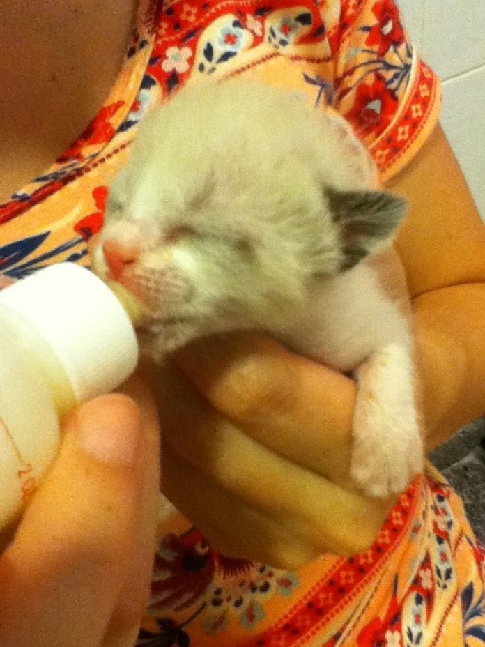 Gatinhos recém-nascidos são jogados em estacionamento