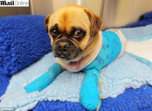 Com 50% do corpo queimado, pug sobrevive a incêndio