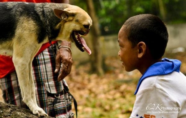 Durante um passeio de rotina, o cão Pui, de dois anos, achou um bebê recém-nascido abandonado dentro de um saco.