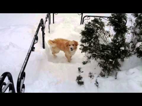 Cão fofo se diverte na neve