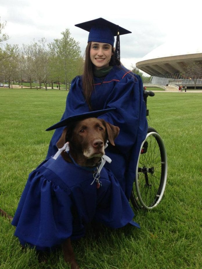 Uma formanda da universidade de Illinois, nos EUA, causou comoção ao publicar a foto com seu cão durante a festa de formatura.