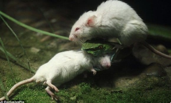 Ratinho corajoso defende o amigo de cobra faminta