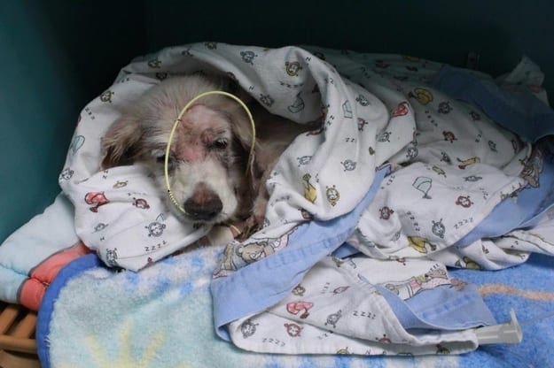 Sem um dos olhinhos, esse cão foi retirado da rua por responsáveis por um abrigo.